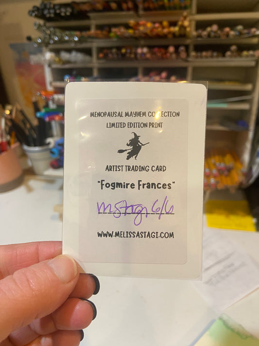 ACEO ORIGINAL WATERCOLOR PRINT, LIMITED EDITION, FOGMIRE FRANCES, MENOPAUSE MAYHEM ART, ARTIST TRADING CARD