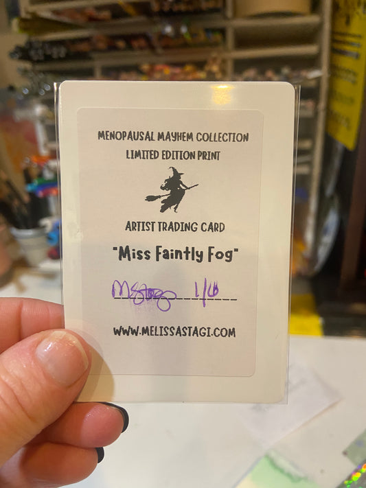 ACEO ORIGINAL WATERCOLOR PRINT, LIMITED EDITION, MISS FAINTLY FOG MENOPAUSE MAYHEM ART, ARTIST TRADING CARD