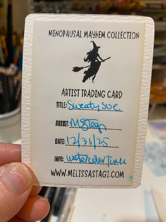 SOLD - Artist Trading Card, Original Painting Sweaty Sue Menopause Mayhem Collection, ACEO