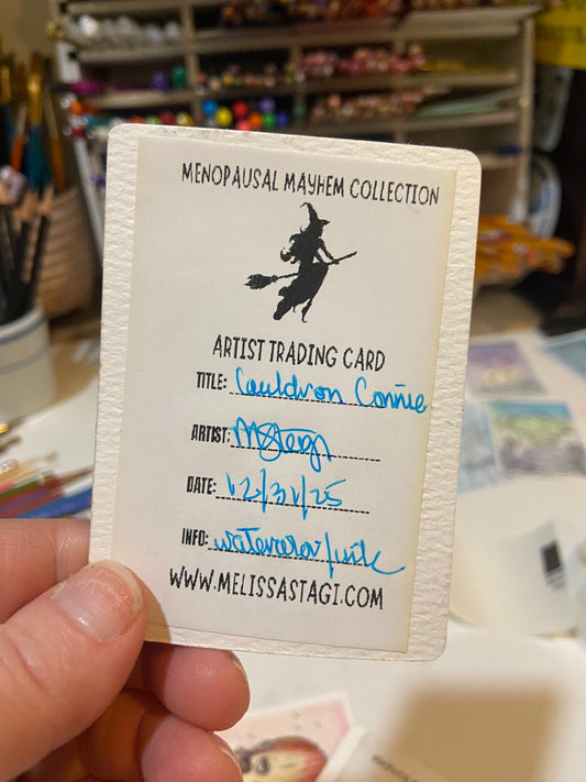Artist Trading Card, Original Painting Cauldron Connie Menopause Mayhem Collection, ACEO