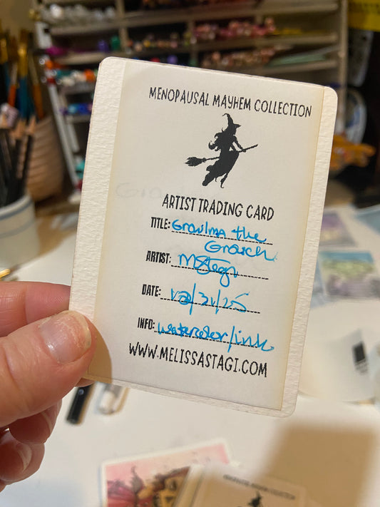 Artist Trading Card, Original Painting Growlma the Grouch Menopause Mayhem Collection, ACEO