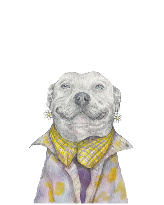 Side Eye Dog embellished print, dog decor, dog owner, trendy dog art, handmade art