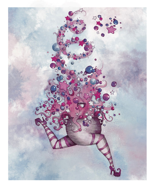 Moons & Stars Cauldron Print Spooky Halloween Art, Vintage Cauldron Art, Halloween Decor