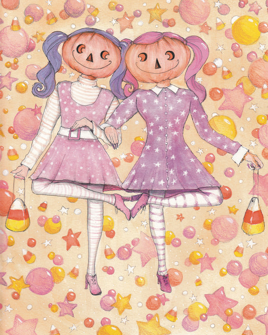 Pumpkin Spice Afternoon Print, Spooky Art Decor, Witchy Halloween Decor Witchy Friends, Summerween, pumpkin art