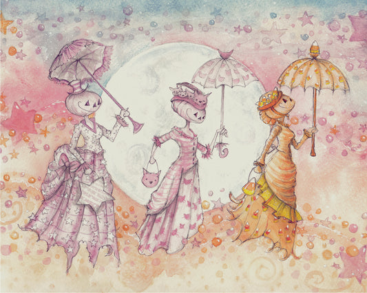 Umbrella Pumpkin Flyers Moonlight Halloween, Pastel goth, Pastel Halloween Decor Vintage Halloween, Spooky Decor