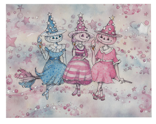 Pumpkin Girls Prints Spooky Art Decor, Halloween Decor Witchy Friends, Decor Vintage Halloween Painting Vintage Witch Wall Art