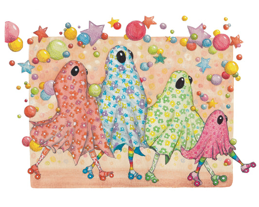 Skate Ghosts Prints Spooky Art Decor, Halloween Decor Ghost Friends, Decor Vintage Halloween