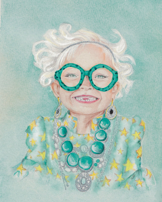 Whimsical Star Girl Portrait – White Blonde Hair & Glasses Cozy Bookish Wall Art Print Watercolor Painting Print