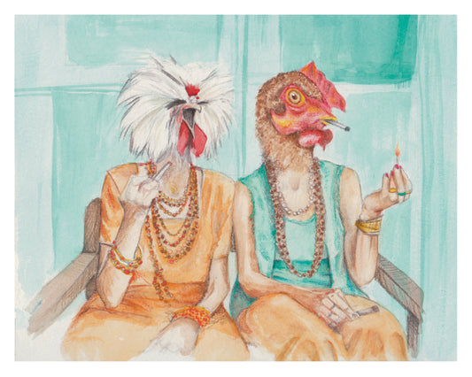Smoked Chicken Watercolor Painting Print, kitchen decor, stoner art, chicken wall art, fantasy chicken art