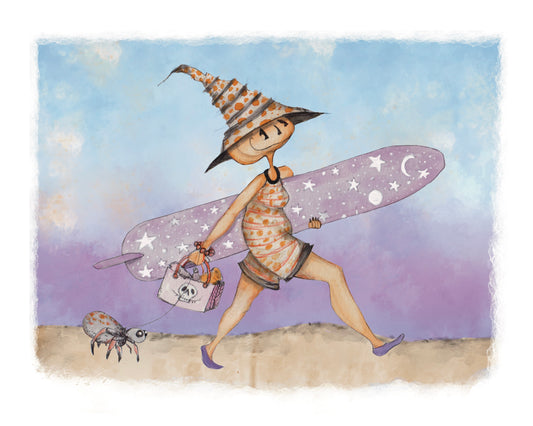Surf Witch, Hot Ghoul Summer, Spooky Art Decor, Halloween Decor Witchy Friends, Summerween