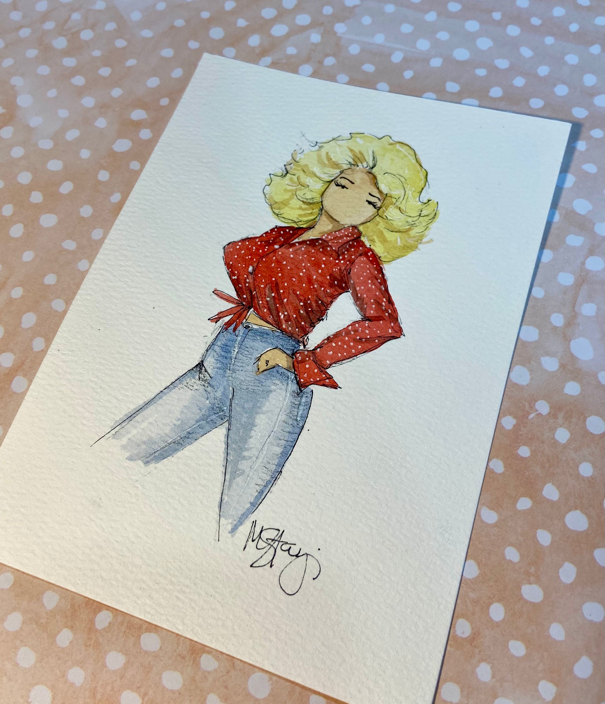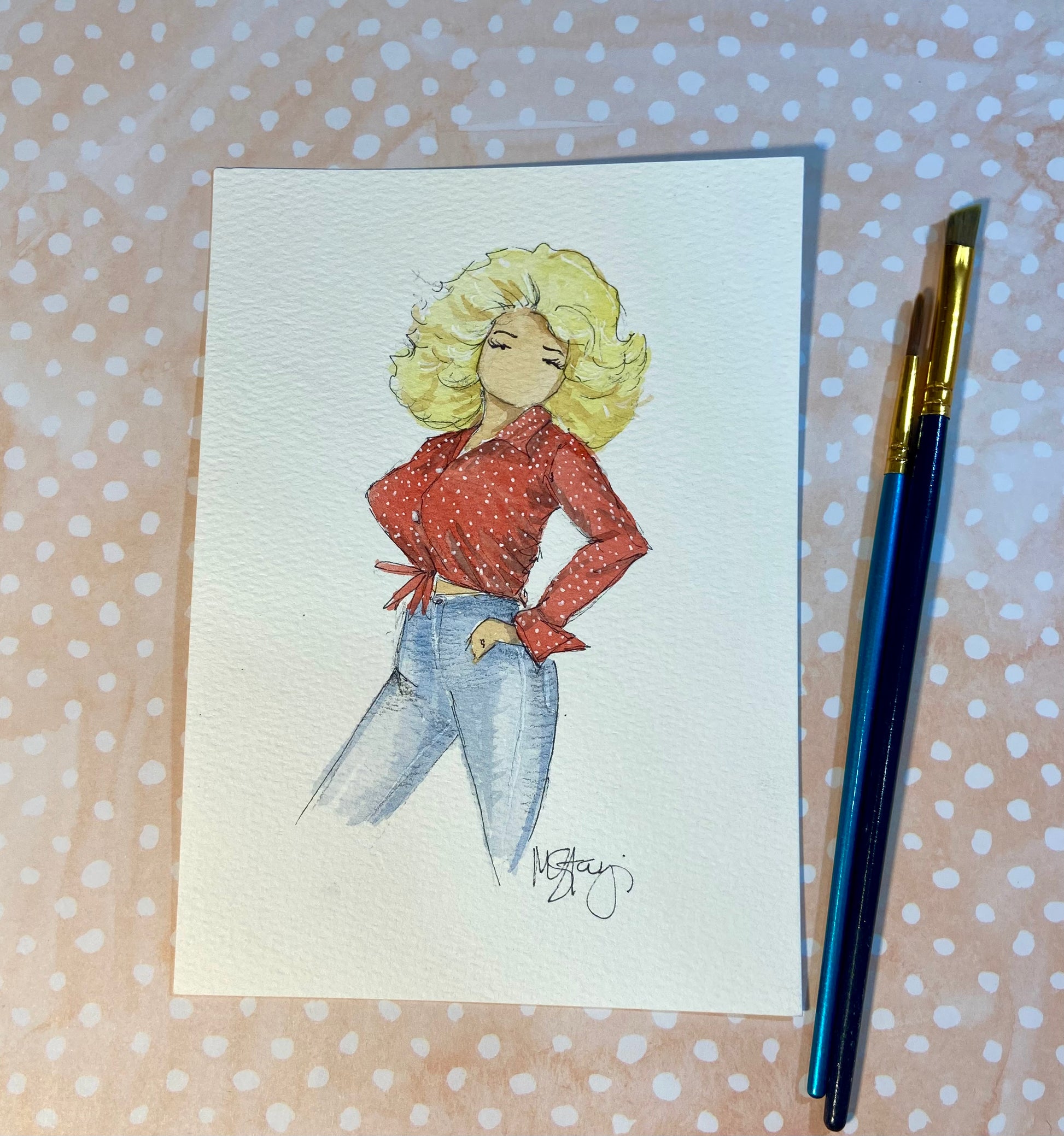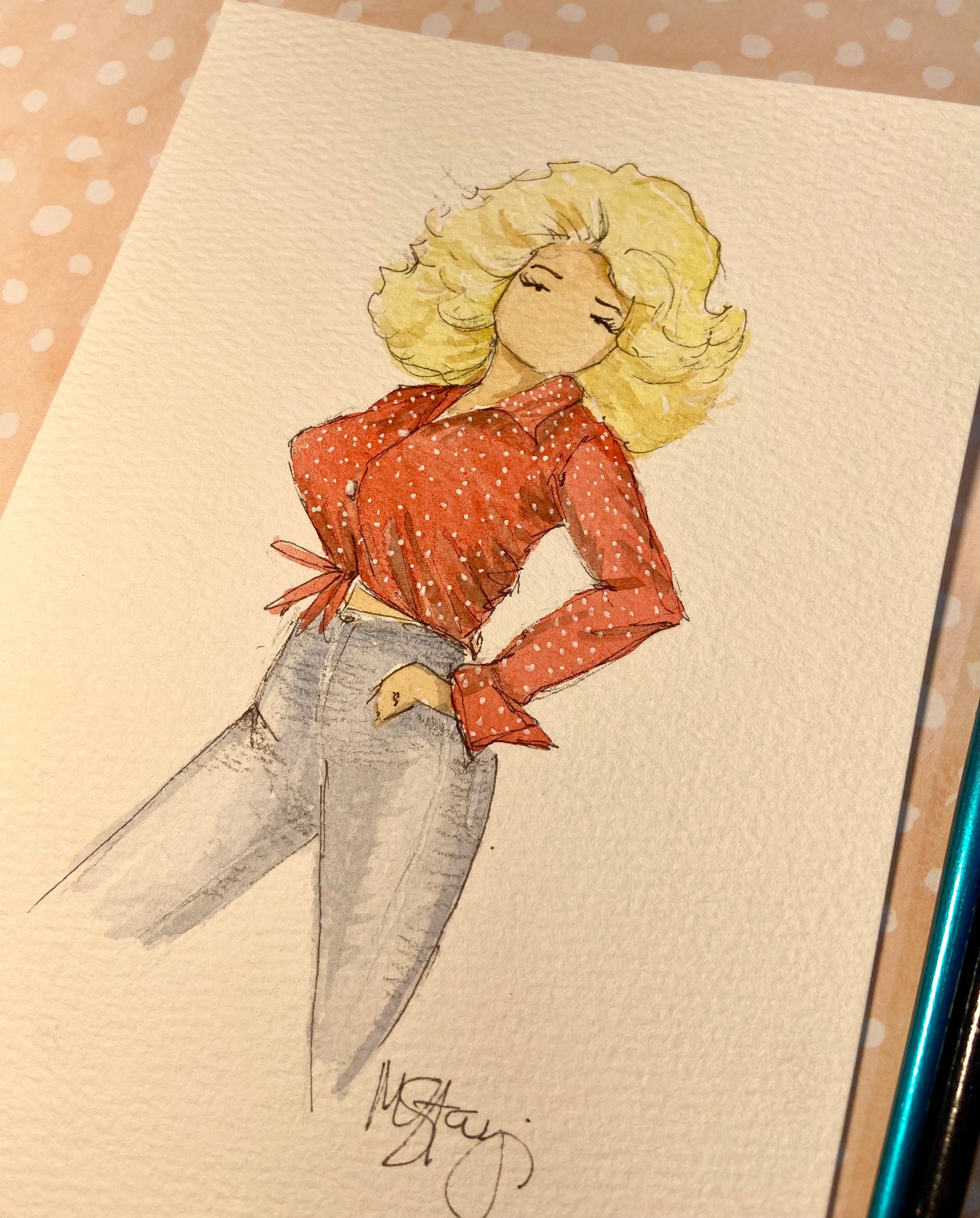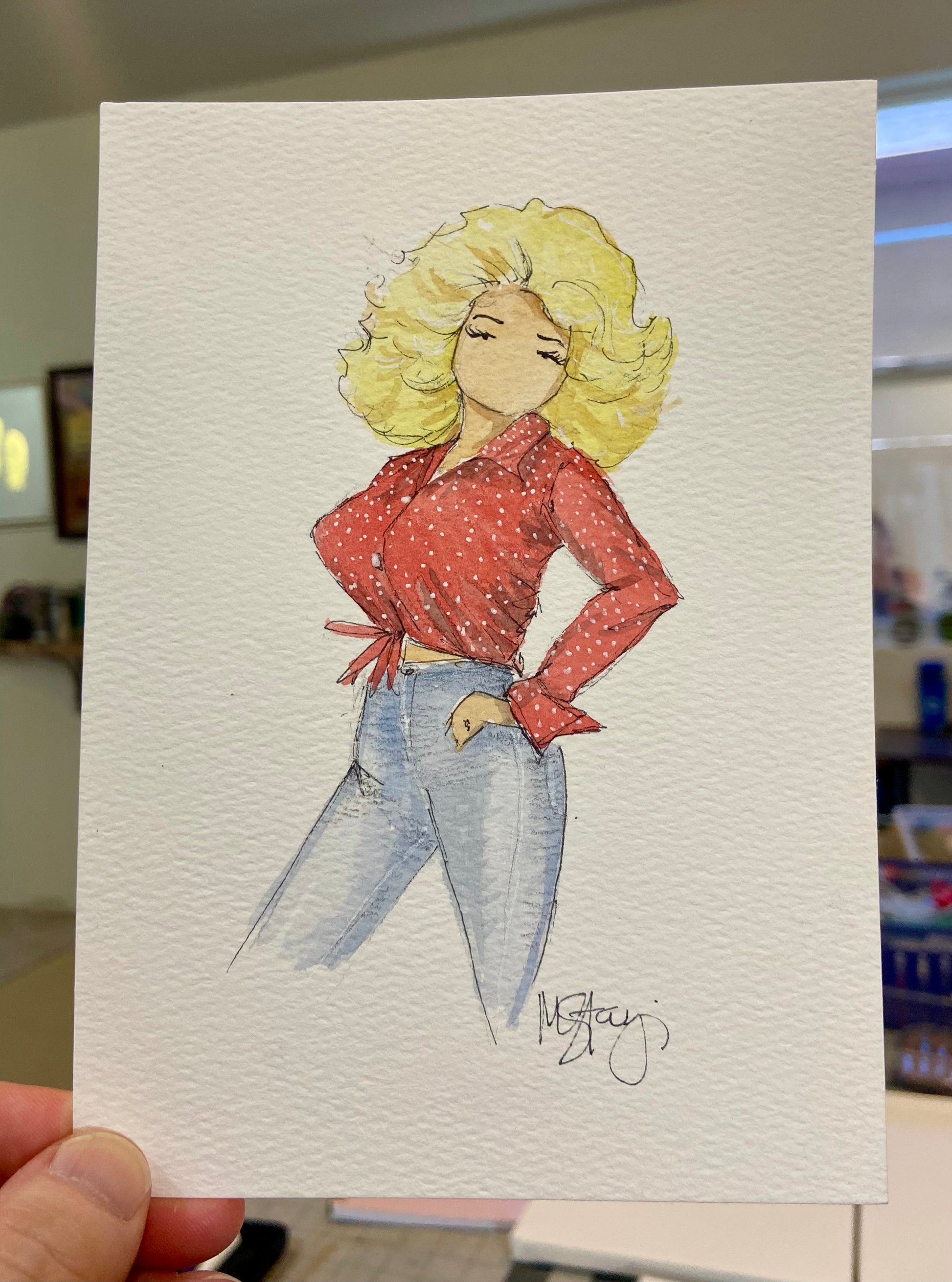 Bring the legendary Dolly Parton into your home with this original watercolor painting! Perfect for fans and music lovers alike, this unique piece captures her iconic image. Plus, it's been featured on live TikTok! Perfect for adding a touch of whimsy to any space.