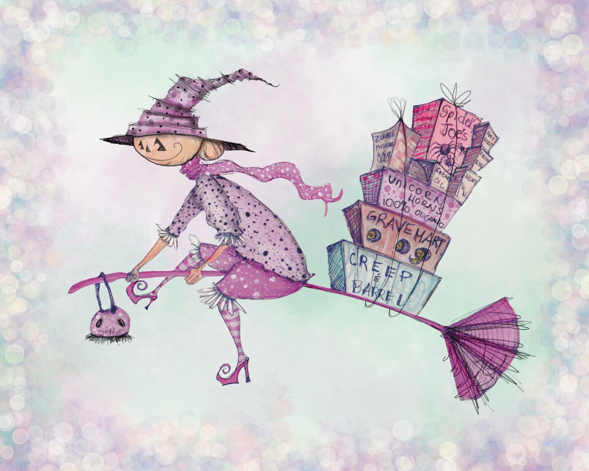 NEW! Hattie’s Shopping Trip Print, Spooky Art Decor, Witchy Halloween Decor Witchy Friends, pumpkin art
